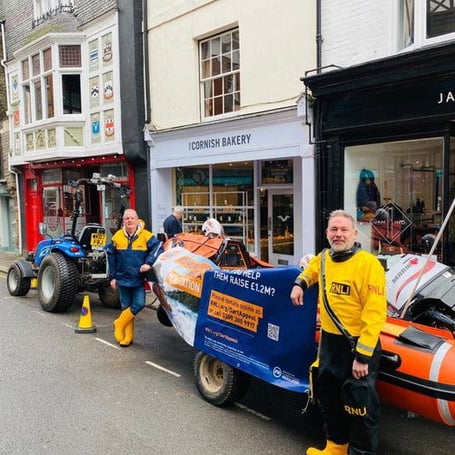 The crew of Dart RNLI with their D-Class RIB cheered on the team from the Cornish Bakery in Fairfax Place on Saturday 18 in Dartmouth. They were cycling as many miles as possible to raise funds for the new boathouse.