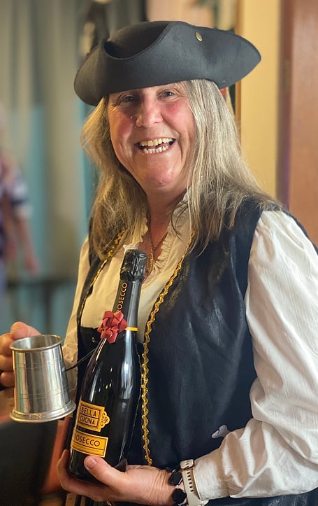 Over £200 was collected for Salcombe RNLI. Mine hosts, Emma, Dan and Jacqui did the village proud, all in pirate costume as were many others. In fact there was wide response to their invitation to come in fancy dress with Mary Wright winning the prosecco prize. Given so many amazing outfits, judging seemed impossible until it was spotted that Mary was the ‘only one who brought her own tankard.’