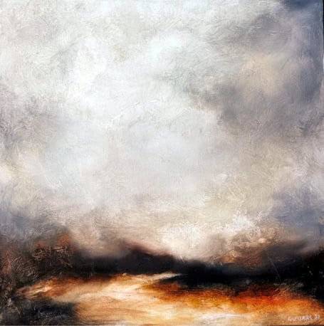 Rachel Clara Stubbs responds to the rugged landscape of Dartmoor through abstract, expressive painting. On a textured paper or canvas support she uses a limited palette of oil paints, aiming to “reduce a scene to its essentials”.