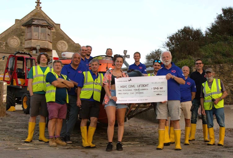 Steve Baguley, Chairman of the Trustees of Hope Cove Life Boat, said: “It’s been great seeing so many people enjoying the Tiki Bar in Hope Cove each Tuesday evening over the summer as we’ve launched for our regular training sessions. We are very grateful to Kate and her customers for this amazing donation. It’s been a very busy year so far for the lifeboat crew. This money will fund essential new drysuits for several of our crew members.”