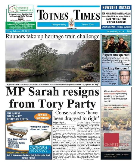 This week in the Totnes Times, we lead on local MP, Dr Sarah Wollaston, resigning from her party because she said it has moved too far to the right.