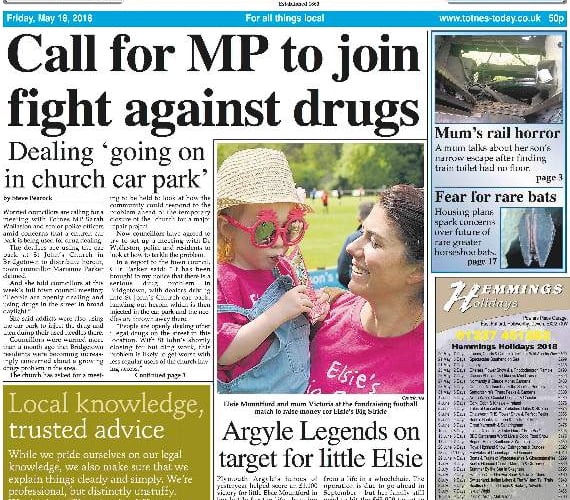 Our main picture shows little Elsie Mountford and her mum Victoria at the football match between the Argyle Legends and Totnes & Darlington FC which raised money for an operation for Elsie, to give her a better life.