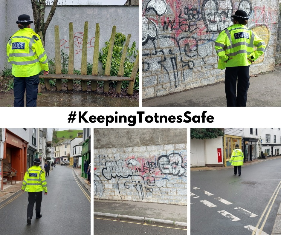 Totnes Police officers have been stepping up their foot patrols through the town centre after some concerns from the local community about the raise in graffiti, people drinking in the street and beggars in the area.