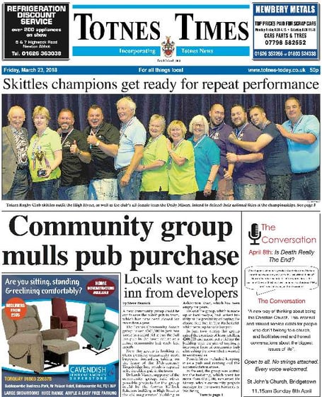 In other news, the Totnes Rugby skittles team, the High Flyers and the Dolly Mixers are heading to the championships to defend their national titles.