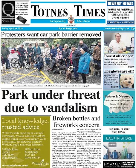 We lead on a story about problems of vandalism on Totnes’s Borough Park, which South Hams District Council says could lead to the closure of parts of it.