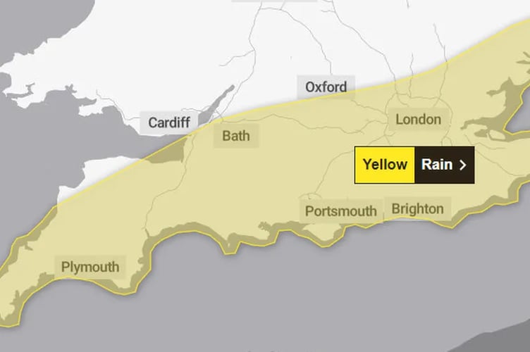 The Met Office has a yellow warning for rain across the South of England from midday tomorrow until 3am on Friday morning.